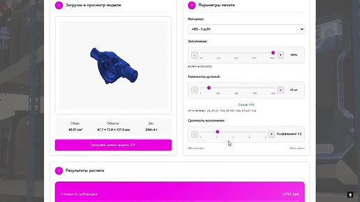 Калькулятор расчета цены 3D-печати