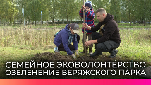 Новгородские семьи высадили деревья и кусты в Веряжском парке