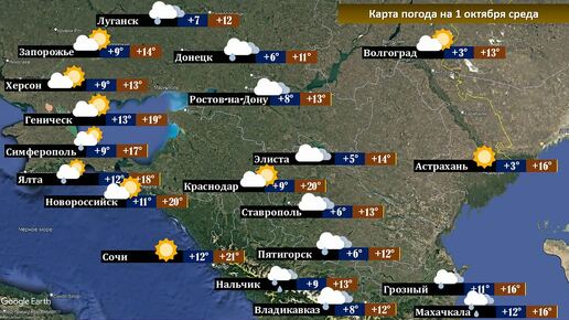 Прогноз погоды на 30 сентября -1 октября 2025 г.