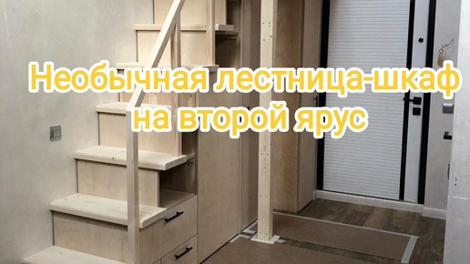 Уникальная лестница шкаф на второй ярус мансарды с обходом колонны