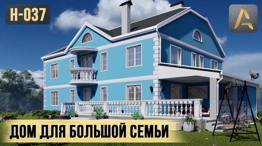 Прекрасный дом для большой семьи. Проект дома имеет 7 спален и большую уютную террасу в 48 м2