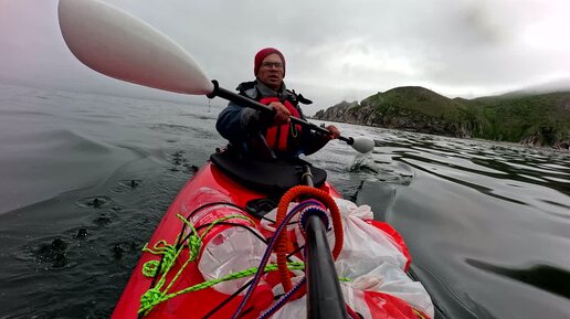 первый день путешествия на каяке по Охотскому морю (6 день в общем)