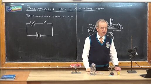 Принципиальная схема простейшей электрической цепи с выключателем и одна из ее вариаций