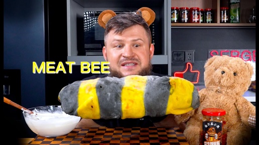 Giant Meat Bee with Sour cream Sauce 🐝🧀, ASMR MUKBANG, АСМР МУКБАНГ, 먹방, 大食い, たべる, 谢尔盖