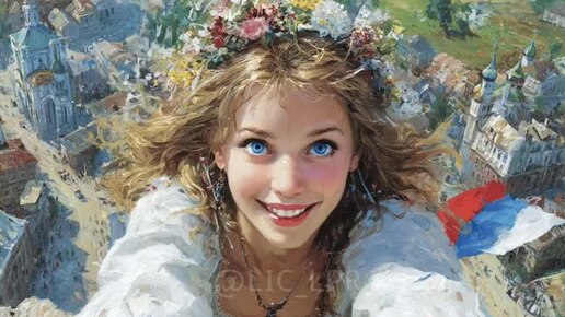🇷🇺 Кстати, вот так 🔼молодой девушкой с российским триколором в руках нейронка представляет воссоединение Донбасса и...