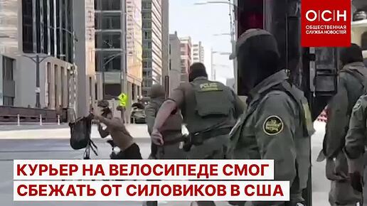 Курьер на велосипеде смог сбежать от толпы американских силовиков. Инцидент произошел в центре Чикаго