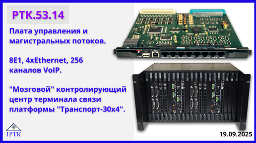 Плата РТК.53.14. Плата управления и магистральных потоков. 8Е1, 4хEthernet, 256 каналов VoIP.