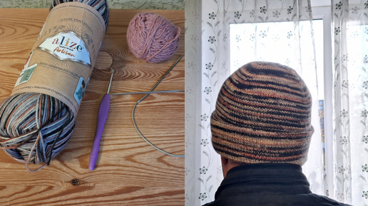 Двойная шапка спицами из носочной пряжи Ализе Артисан готова!30.09.25г.