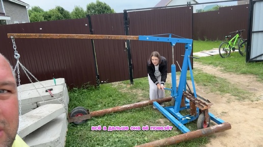 Таскаем с дочкой плиты весом 200кг. Самодельный аппарат для перевозки плит нам помог)дорожки на даче