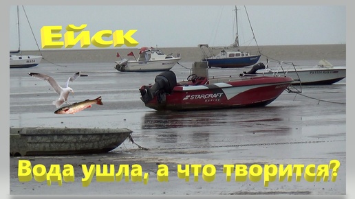Воду угнало. Что творится на пляжах. Рыбу хоть руками собирай. Ейск.