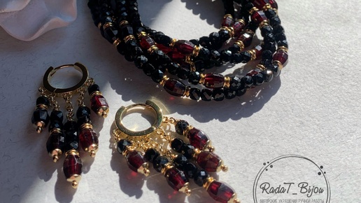 Процесс сборки. Серьги из турмалина шерл и граната.