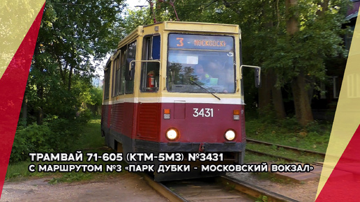 "Сквозь заросли!" Трамвай 71-605 (КТМ-5М3) №3431 с маршрутом №3 "Парк Дубки - Московский вокзал"