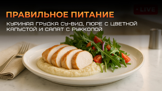 Правильное питание: куриная грудка су-вид, пюре с цветной капустой и салат c рукколой