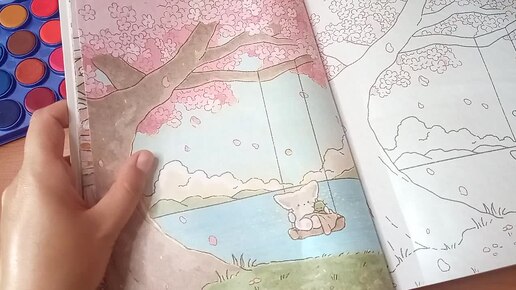 Обзор на раскраску Лисенок Согыми. Тестирую бумагу акварелью