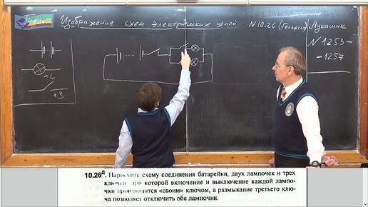 Задача на изображение схемы батарейки, двух лампочек и трех ключей. Использование данной схемы при освещении учебного класса