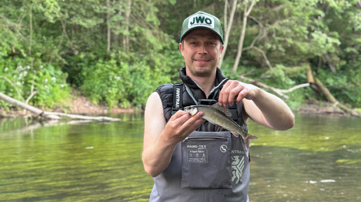 Гоняем по малой реке под водометом. Нашли и поймали Тверского Хариуса!