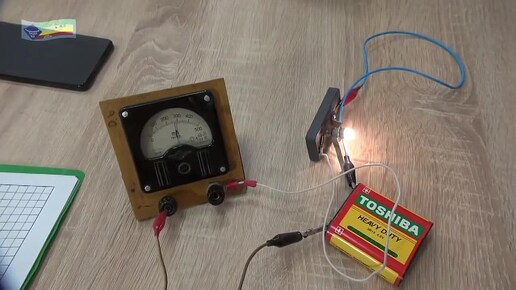 Измерение силы тока в простейшей электрической цепи с источником тока и лампочкой с помощью миллиамперметра и амперметра