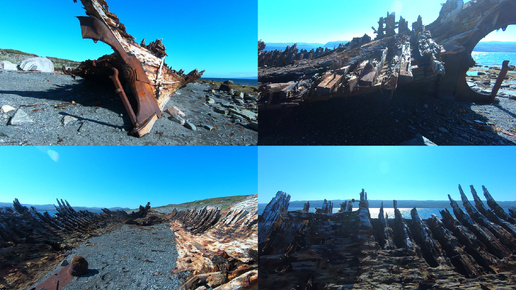 С Юга на Север-32ч. Корабль-призрак на полуострове Средний: скрытые ржавые останки на побережье.