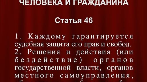 Каждому гарантируется судебная защита его прав и свобод. СТАТЬЯ 46 Конституции Российской Федерации