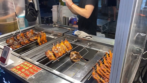 Ночная улица еды в Санья, Хайнань. Ночной рынок в Санья, Хайнань. Обзор улицы еды в Санья.