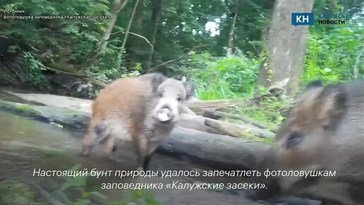 Калужские заповедные кабанчики напали на фотоловушку