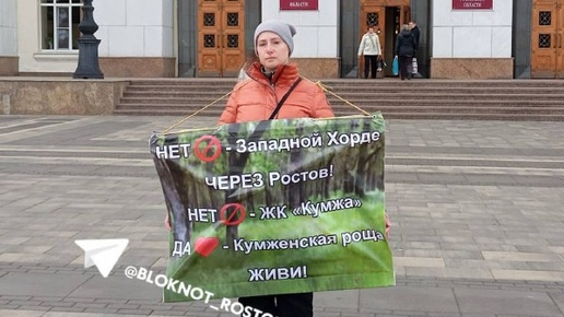 Пикетчицу с плакатом против вырубки Кумженской рощи задержали в Ростове