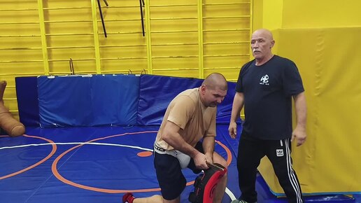 Отработка действий от удара ножом снизу на лапах. В. Н.Крючков