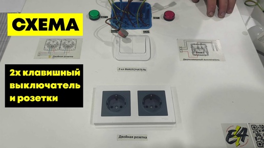 Схема 2х клавишных выключателей и розетки. Электромонтаж. СХЕМА подключения выключателя и розетки.
