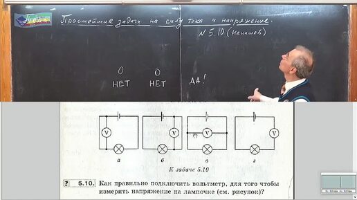 Задача на определение правильности подключения вольтметра в электрическую цепь для измерения напряжения на электрической лампочки
