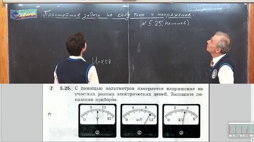 Задача на определение напряжения электрического тока, протекающего через электрическую цепь по показаниям вольтметра