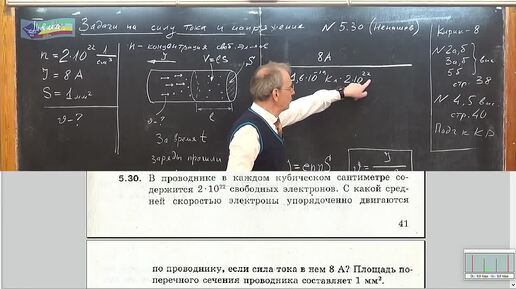 Задача на определение средней скорости упорядоченно движущихся по проводнику электронов