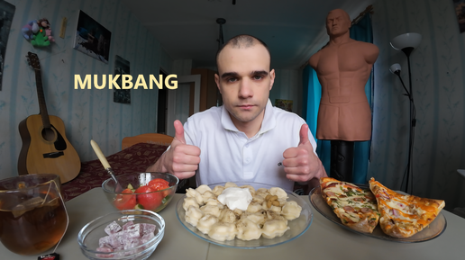 МУКБАНГ ПЕЛЬМЕНИ СО СМЕТАНОЙ И ГОРЧИЦЕЙ / САЛАТ / ПИЦЦА - ДВА КУСКА / MUKBANG ИТИНГ АСМР