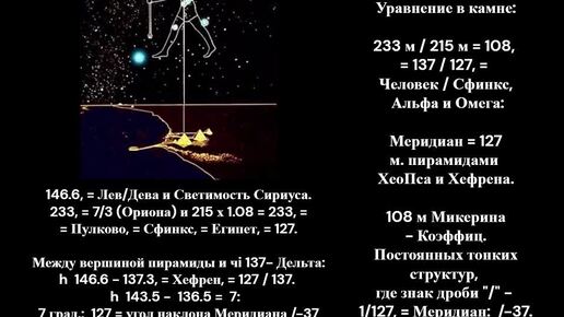 Легенды ч.5. Уравнение в камне: Сфинкс и пирамиды в Гизе. Постоянные тонкой структуры обоих миров, Альфа и Омега, - в фигуре Сфинкса.