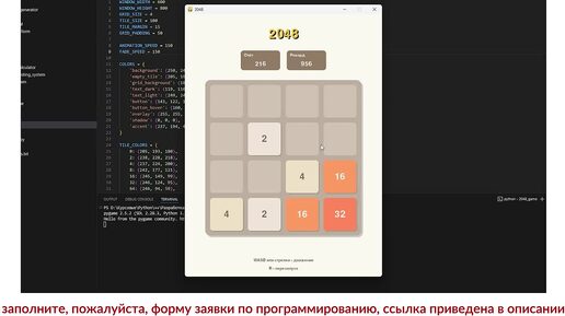Разработка игры «2048 – складывание чисел». Программа на Python. Курсовая работа.