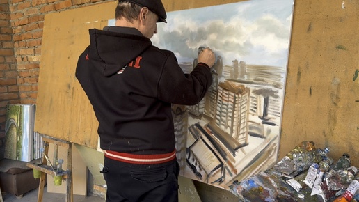 Подмалевок. Грозный, район старого рынка, масло/холст 100 на 140 см. Зилавди Яшуркаев.