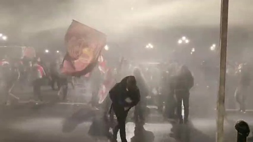 Спецназ начал разгон протестующих в Тбилиси водометами.