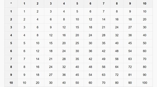 Таблица умножения на PHP, CSS и HTML.