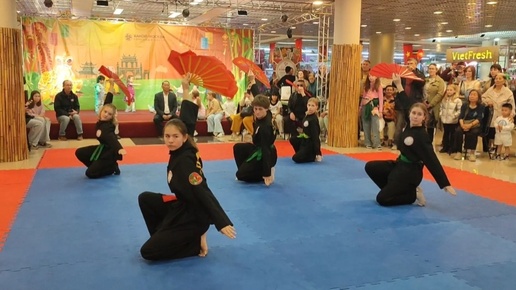 Выступление школы вьетнамских боевых искусств на празднике полной луны