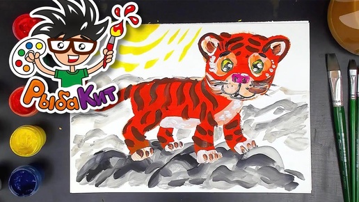 Рисуем ТИГРА красками ГУАШЬ с РыбаКит