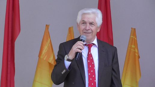 Пожилой певец поёт песню, песня: Скоро осень, господа