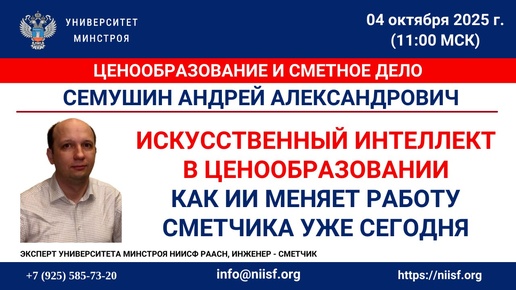 Видео. Семушин А.А. Искусственный интеллект в ценообразовании: как ИИ меняет работу сметчика уже сегодня