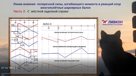 Часть 3. Линии влияния поперечной силы, изгибающего момента и реакции опор многопролетных шарнирных балок