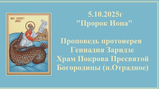 5.10.2025г "Пророк Иона" Проповедь протоиерея Геннадия Заридзе. Храм Покрова Пресвятой Богородицы (п.Отрадное)