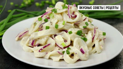 Очень вкусный рецепт салата из кальмаров, это просто божественно!