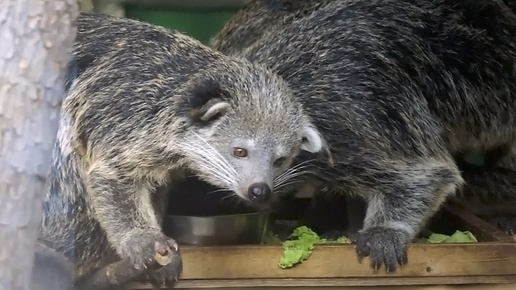 Семейство бинтуронгов, где родители и дети, с аппетитом поедают овощи на ужин.