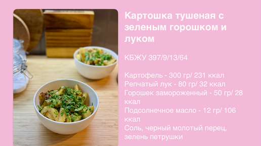 Картошечка с зеленым горошком и карамелизированным луком. Плотный обед на 400 калорий, без мяса!