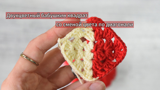 Вяжем вместе двухцветный бабушкин квадрат с разделением по диагонали, подробный МК