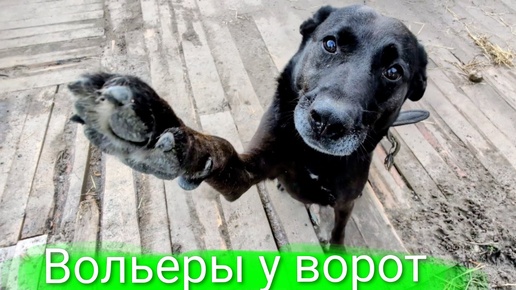Вольеры у ворот и стройка