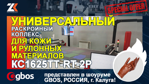 Универсальный конвейерный раскройный комплекс для рулонных и листовых материалов GBOS модель КС1625ТТ-RT-2P