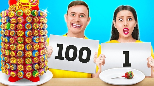 100 СЛОЕВ ЛЮБИМОЙ ЕДЫ || Кто будет везучим? Без рук VS. 1 Рука VS. 2 Руки от 123 GO! GOLD